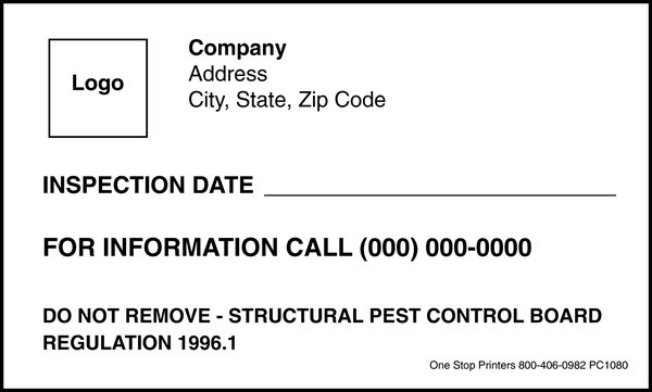PROPERTY & TERMITE INSPECTION SERVICES 12345. license and/or company registration and complaint history. You may also get the information at the Board's Website at:www.pestboard.ca.gov WOOD DESTROYING PESTS AND ORGANISMS INSPECTION REPORT ... View Doc